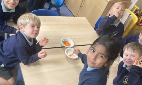 To support our writing of instructions in English, we read a recipe on how to make bread. This linked brilliantly with our science, which was observing a change over time. We all really enjoyed eating the tasty bread once it was cooked!
