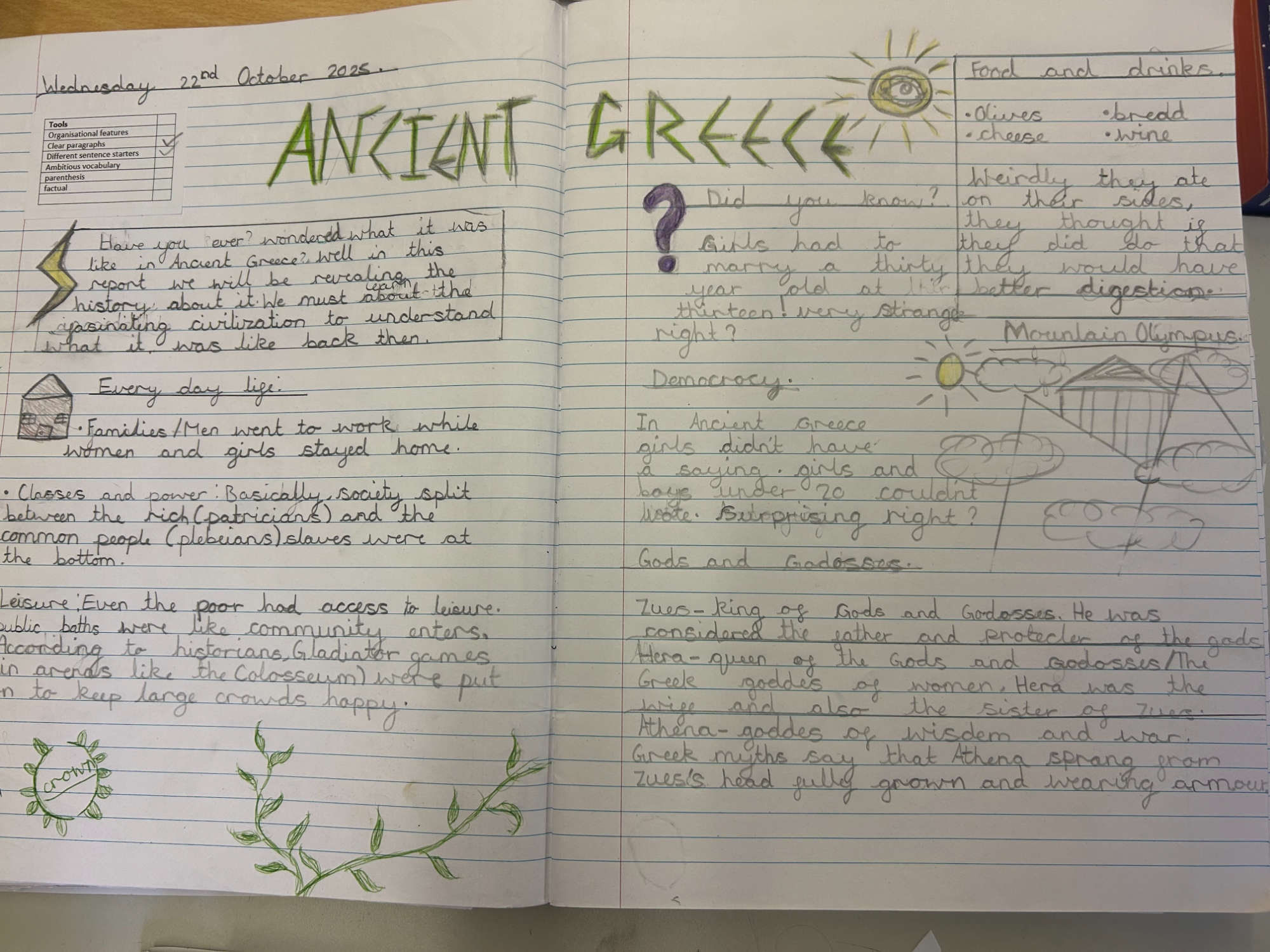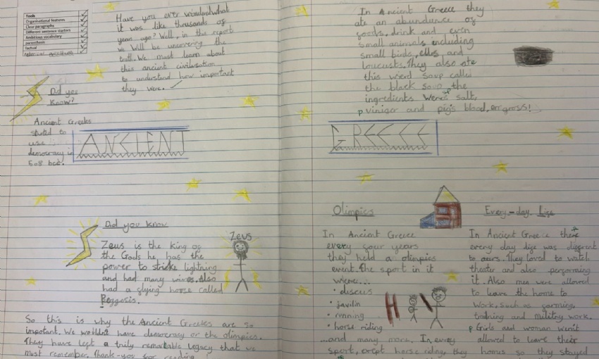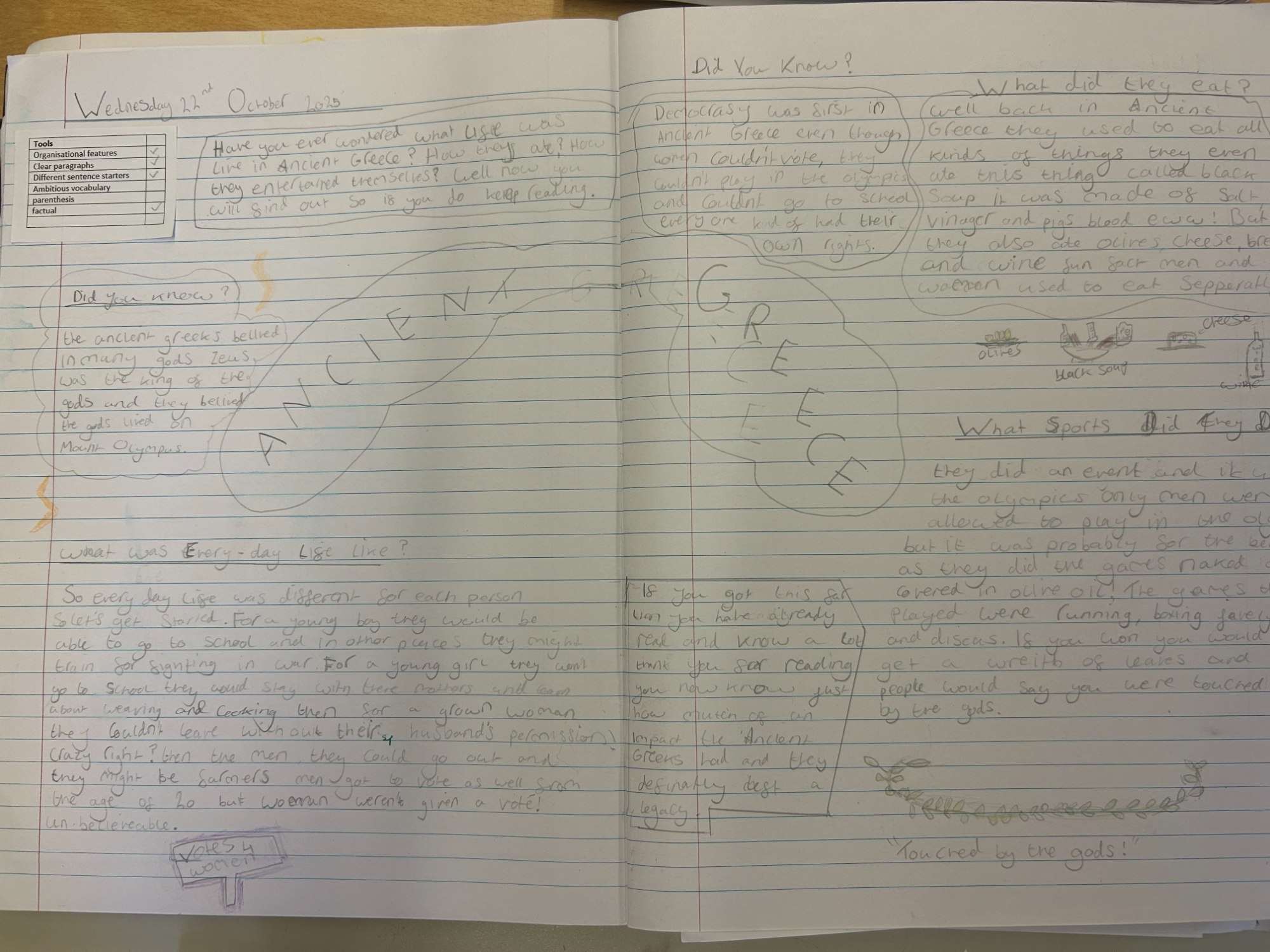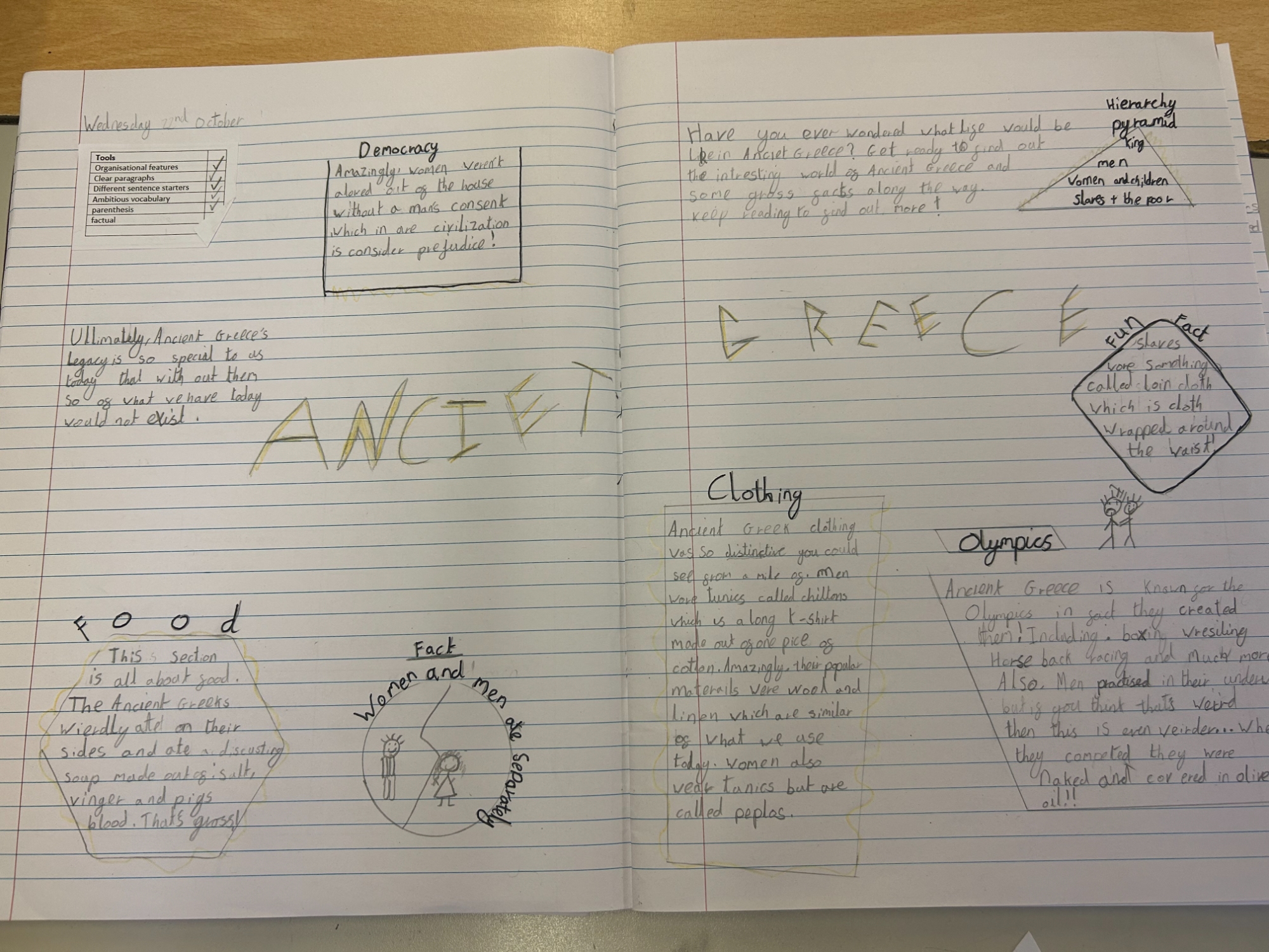 After completing our unit on Ancient Greece, the children were challenged to write reports using everything they know!