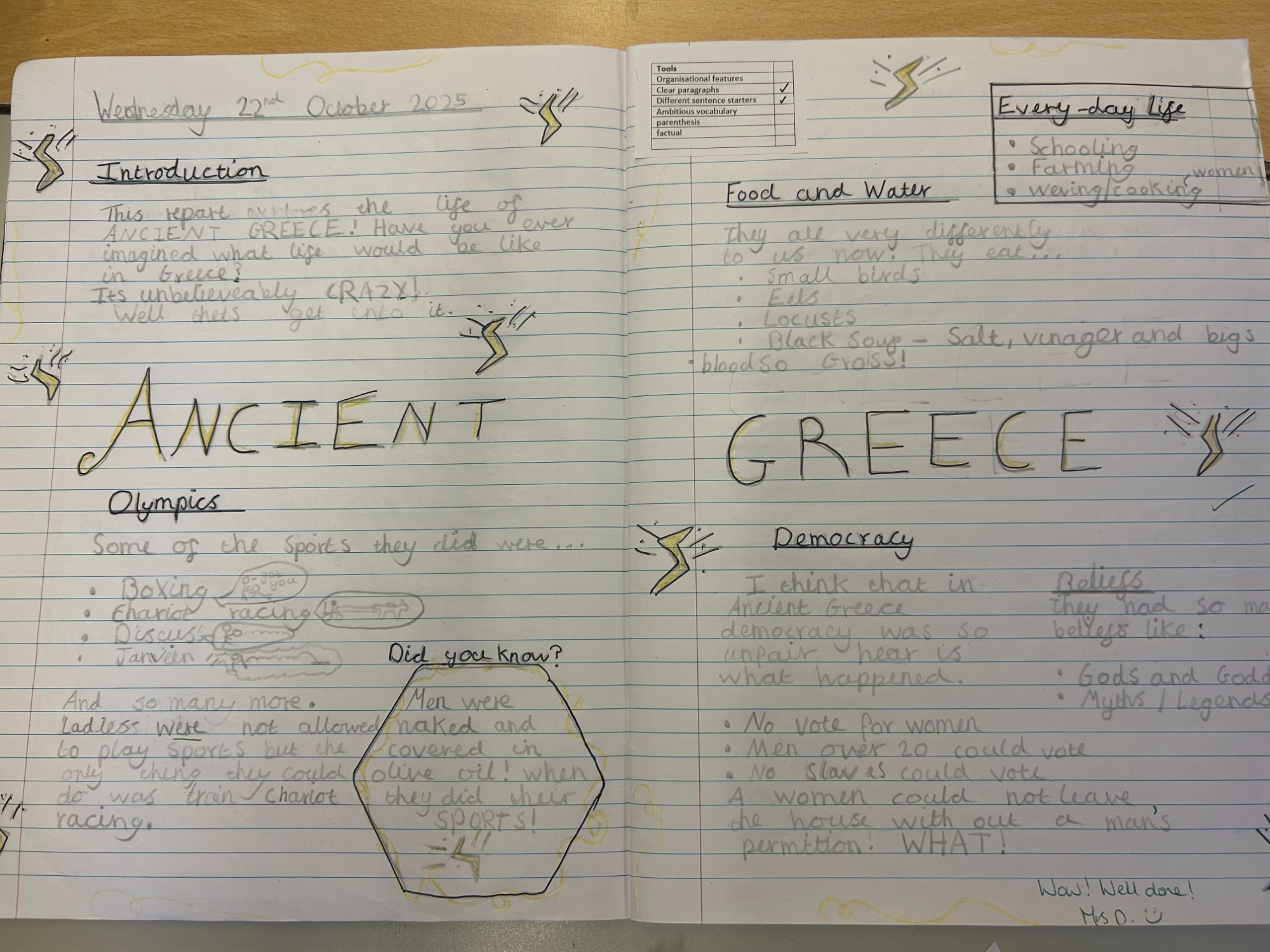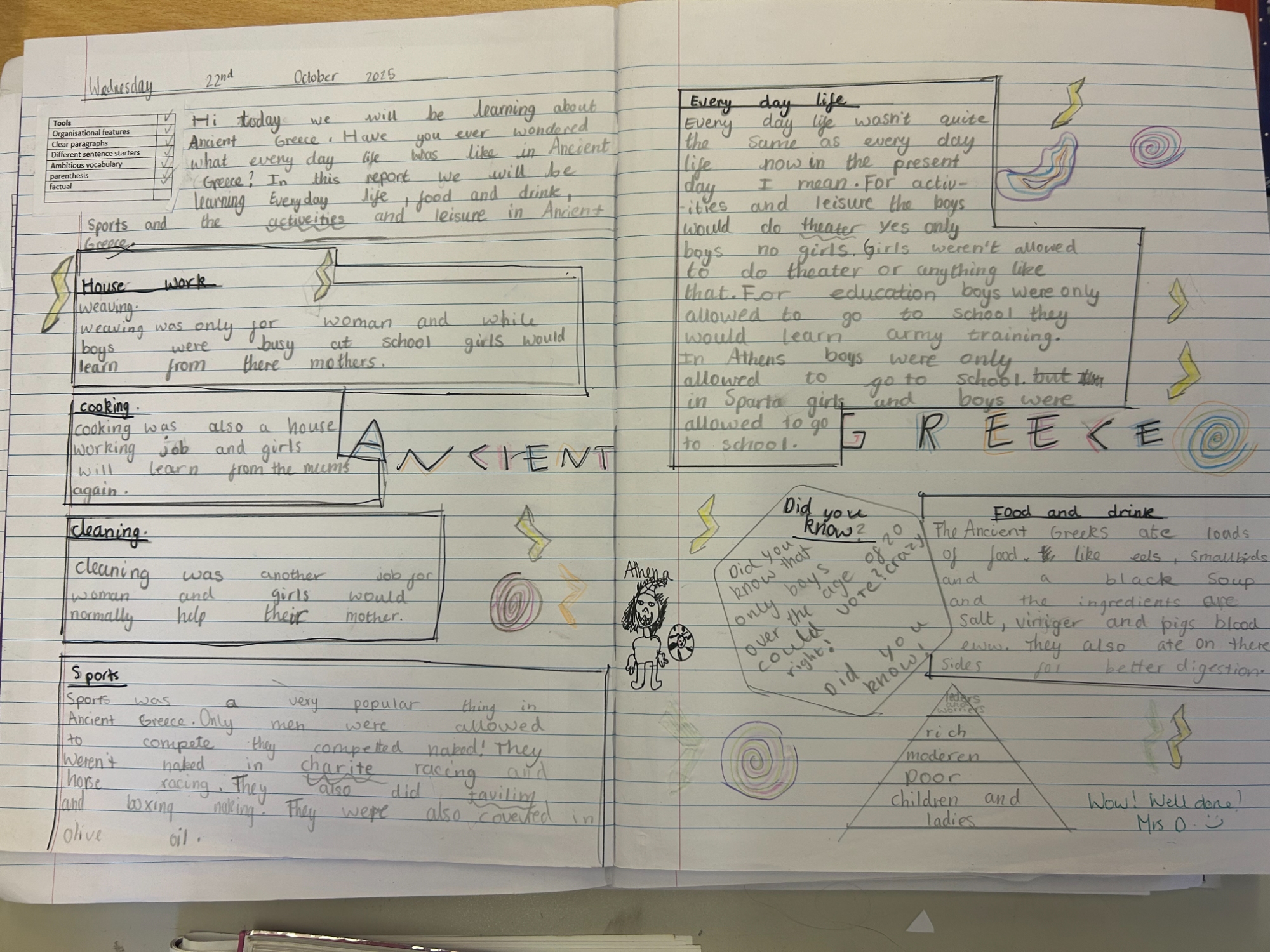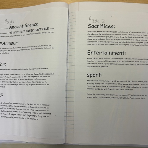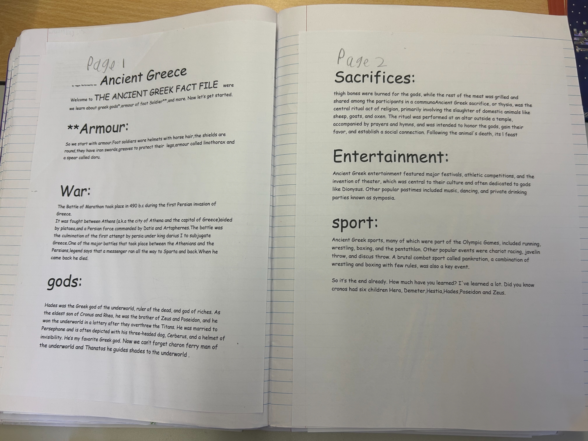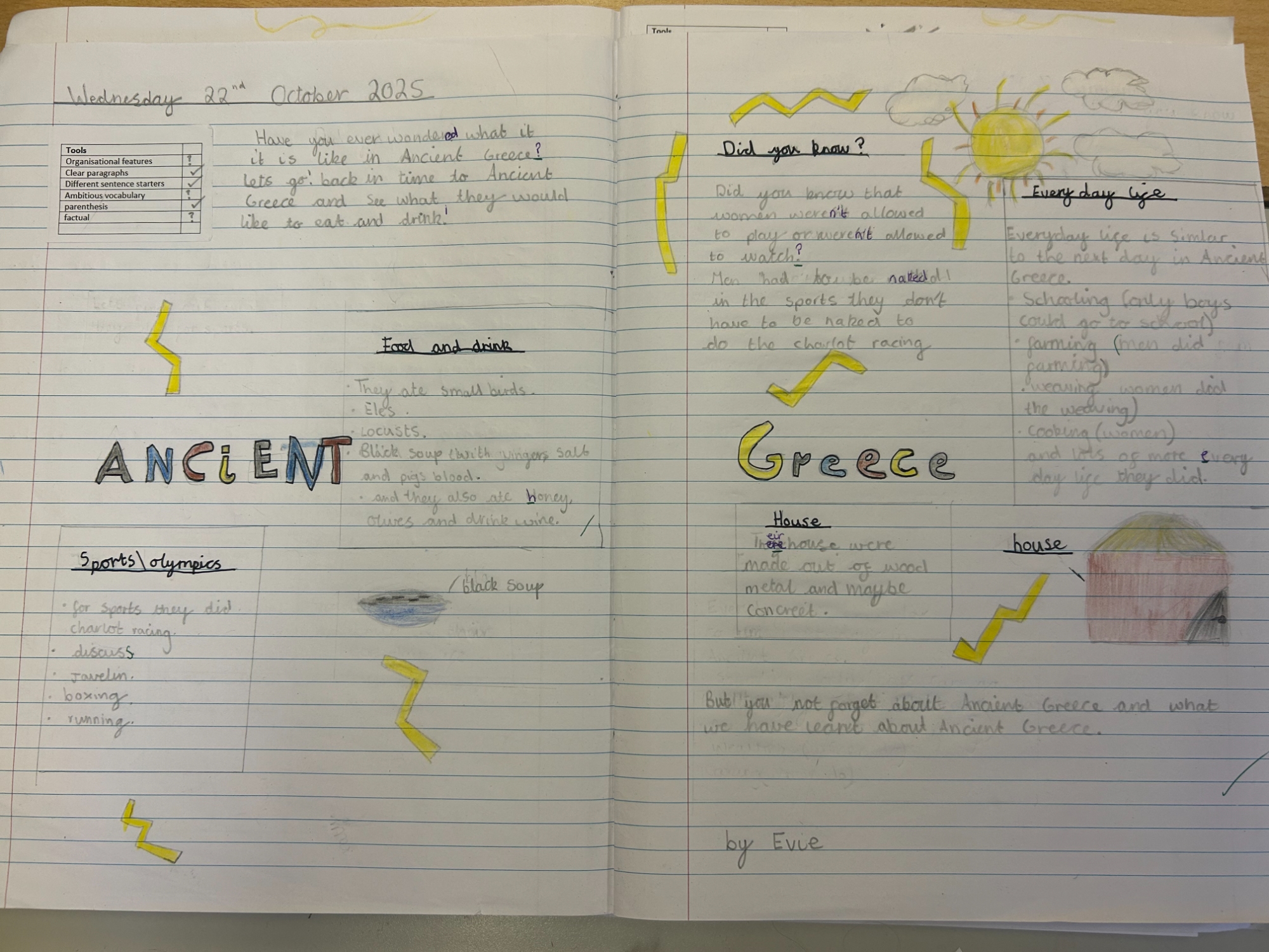 After completing our unit on Ancient Greece, the children were challenged to write reports using everything they know!