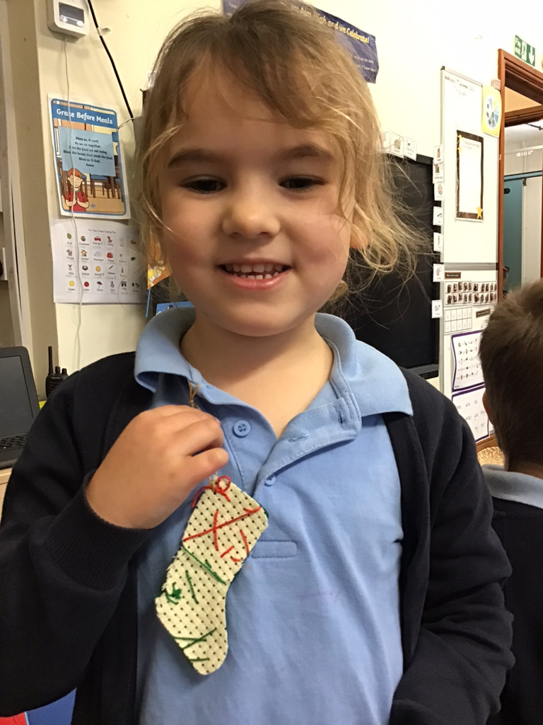Afterwards, they created their very own Christmas decorations using their skills in the form of a Christmas stocking!