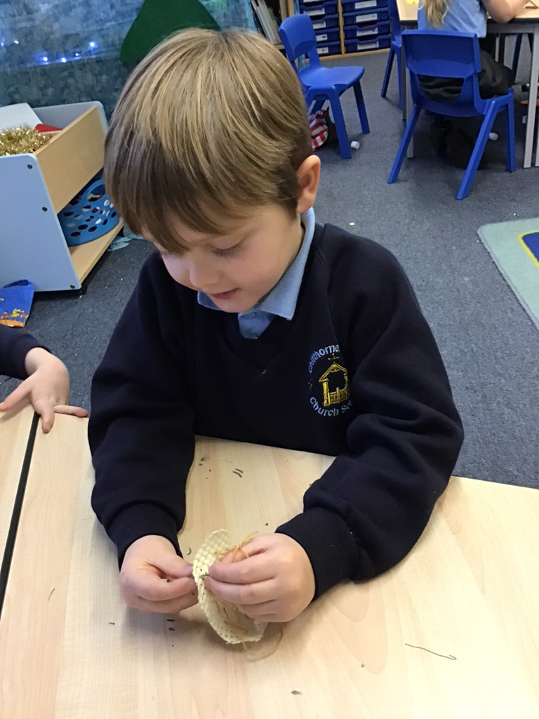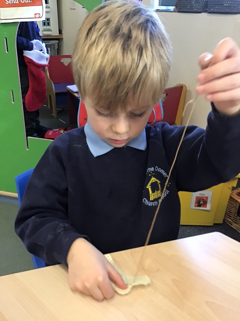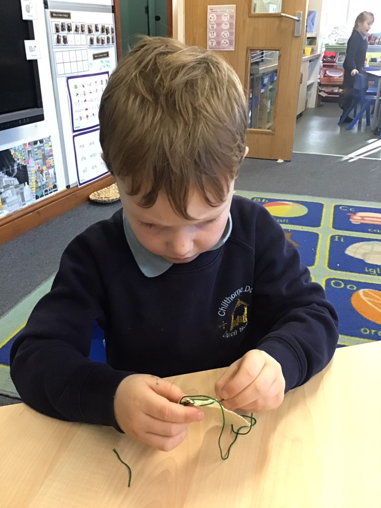 This week, Ash Class learnt all about sewing. They began by developing their knowledge about the tools required to sew e.g. the needle and how it has an eye, as well as the thread. They then developed knowledge about how sew by practising the up and down movement by weaving paper in and out of Christmas trees, and using threading cards.