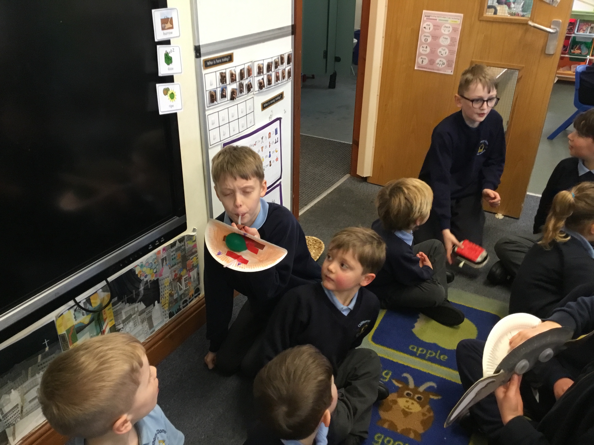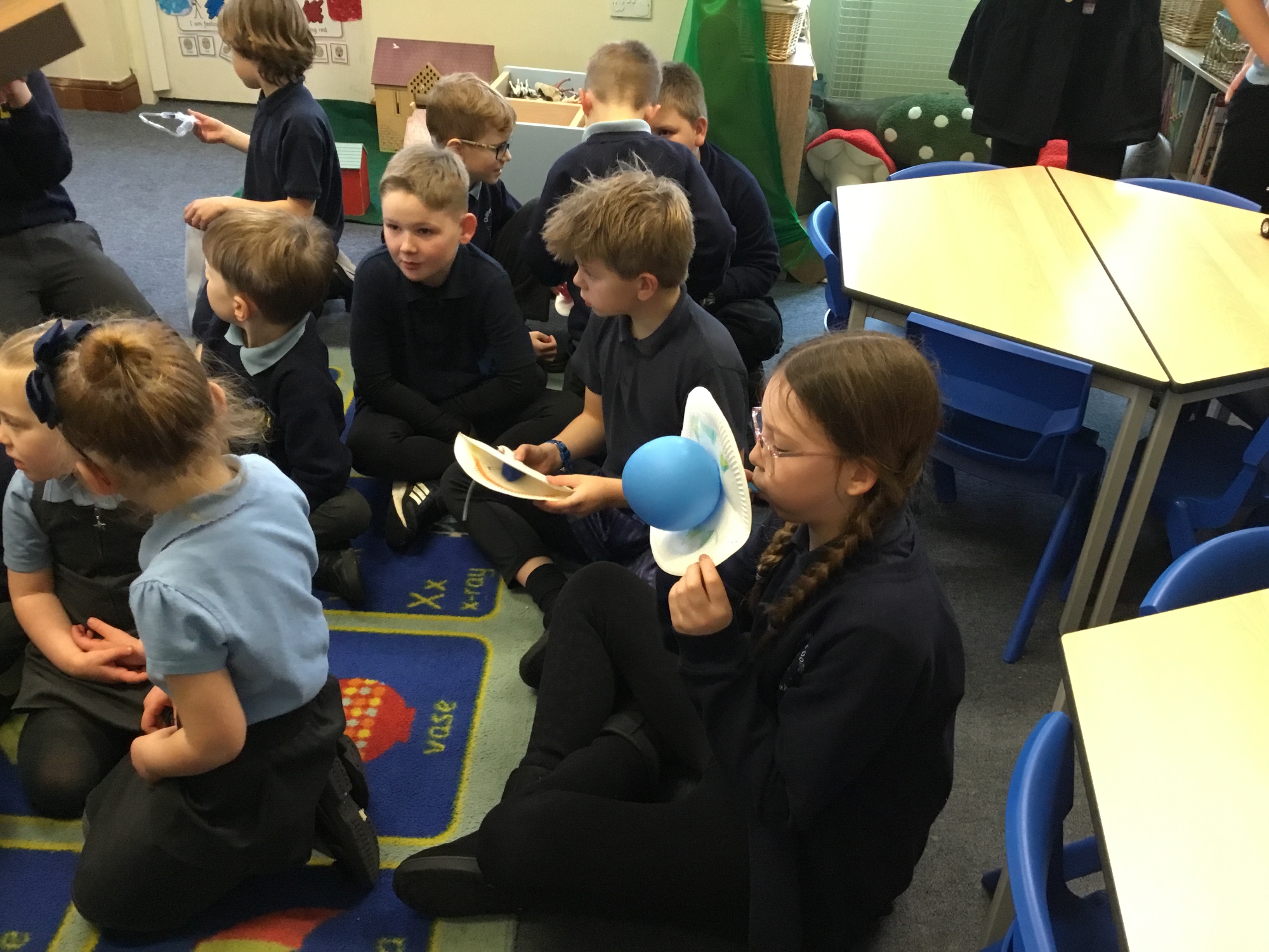 Oak Class designed and made pneumatic toys before sharing them with Ash Class.
