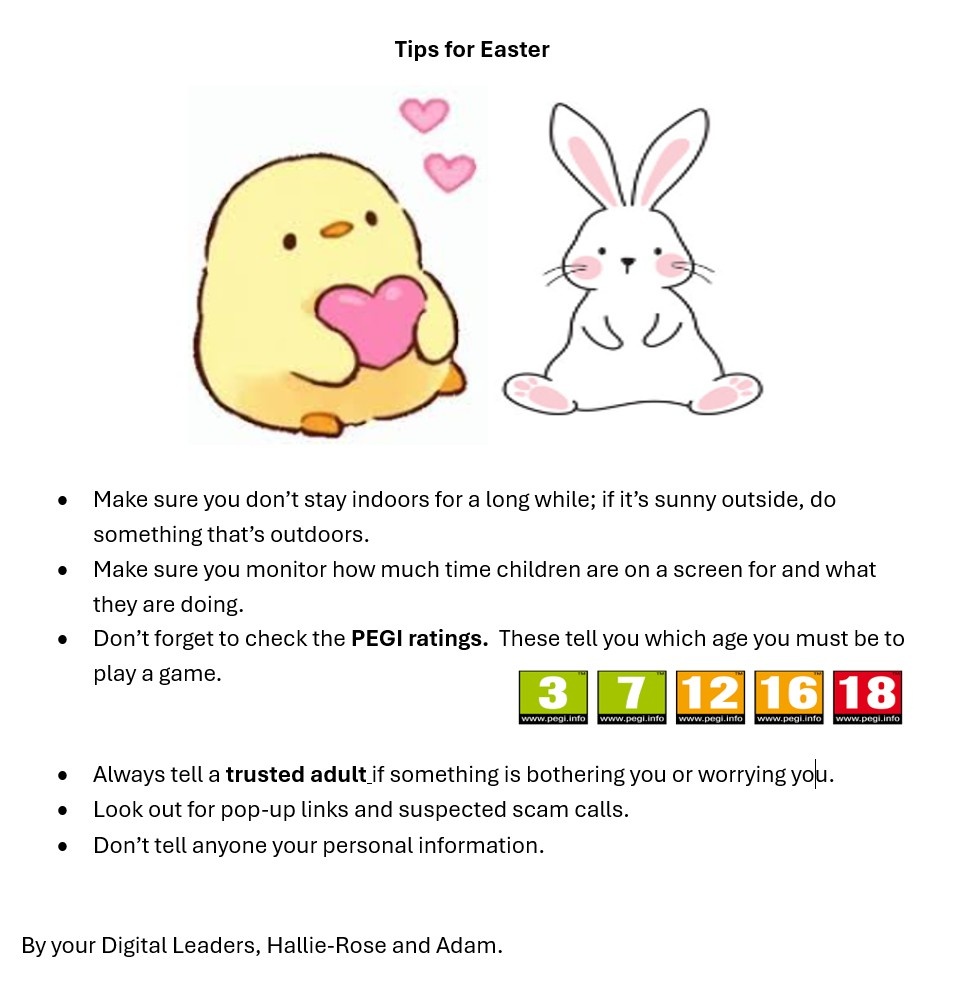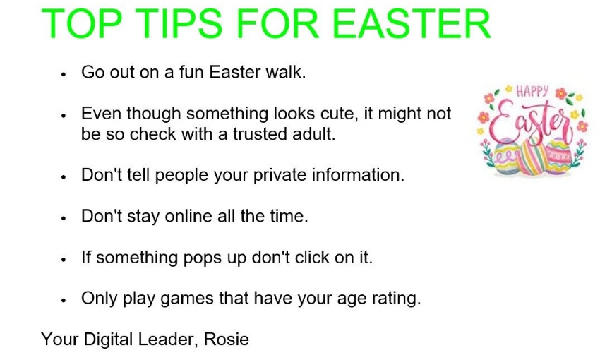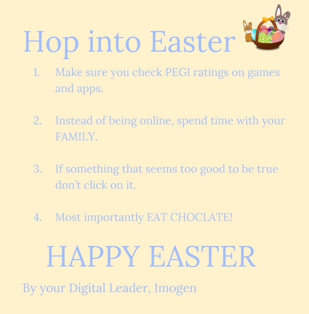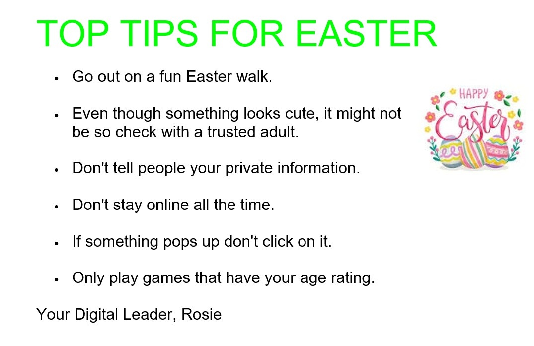Please have a look at the Digital Leader's amazing top tips for staying safe this Easter.