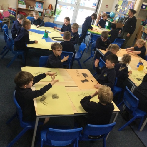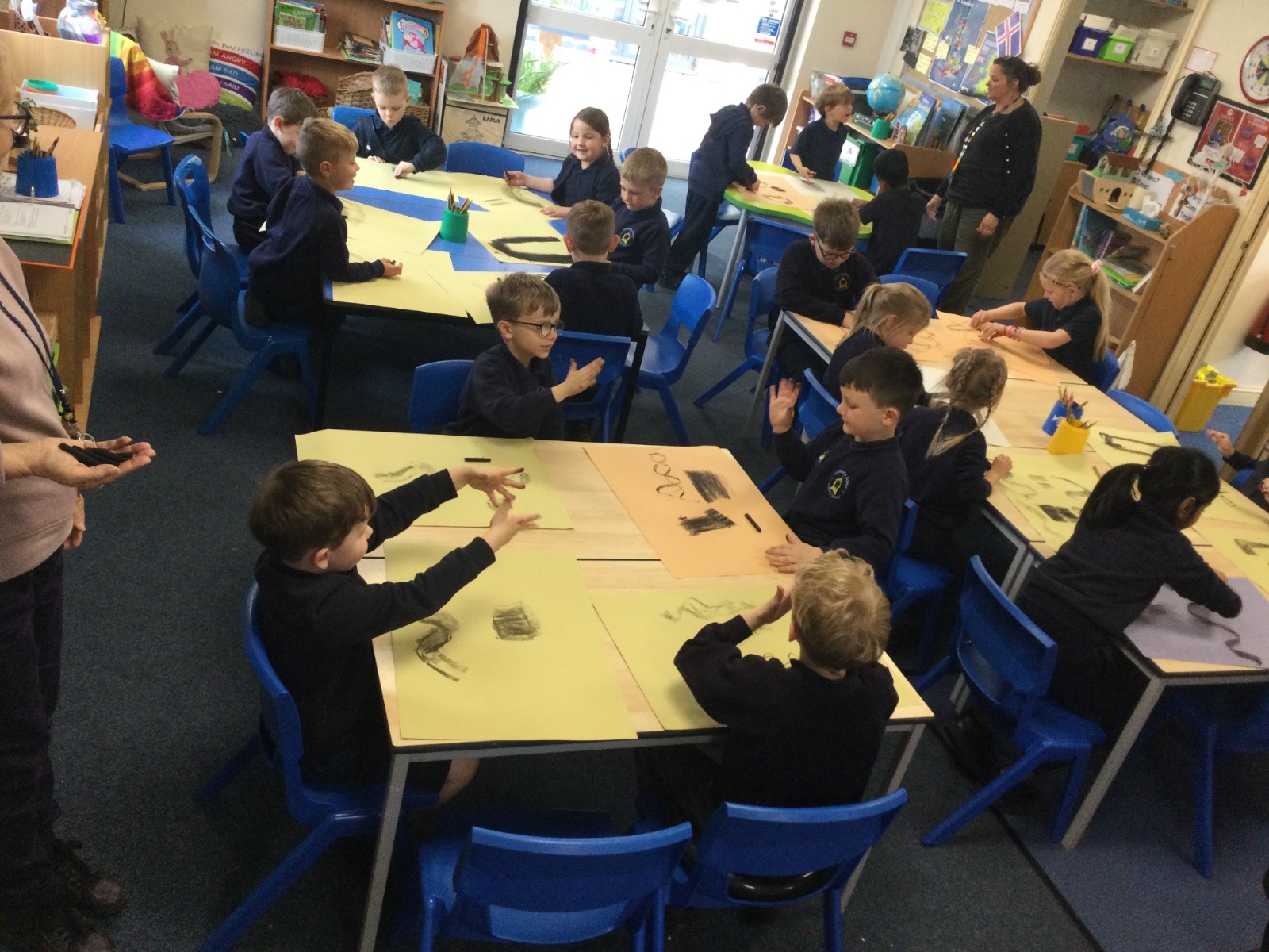 Our first art unit is focusing on using charcoal. In our first lesson, we looked at artists that use charcoal in their work, and then we explored different ways that we could use it to create different effects. It was messy but great fun!