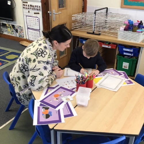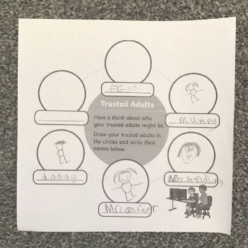 Drawing a poster of the children's trusted adults.