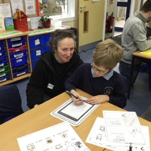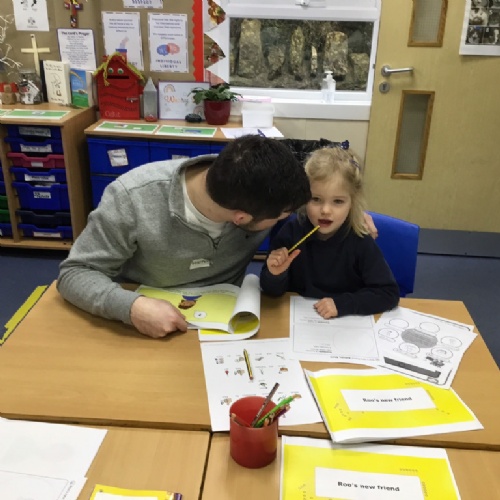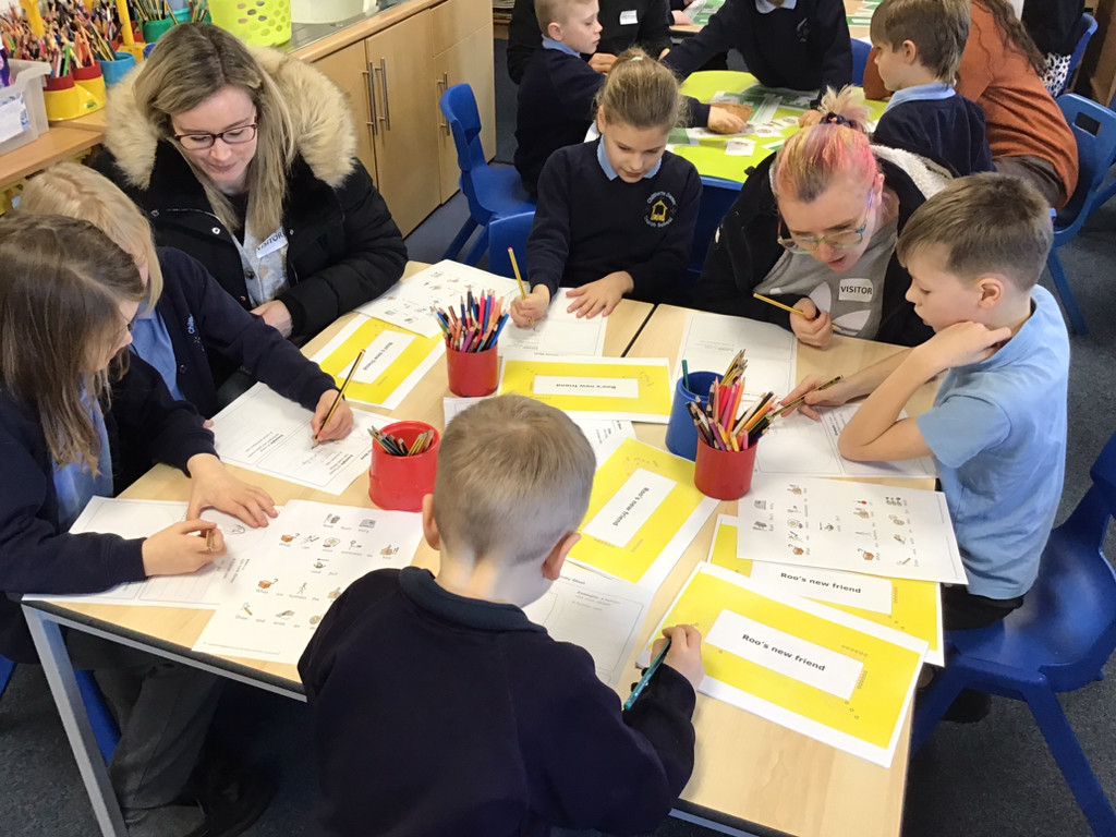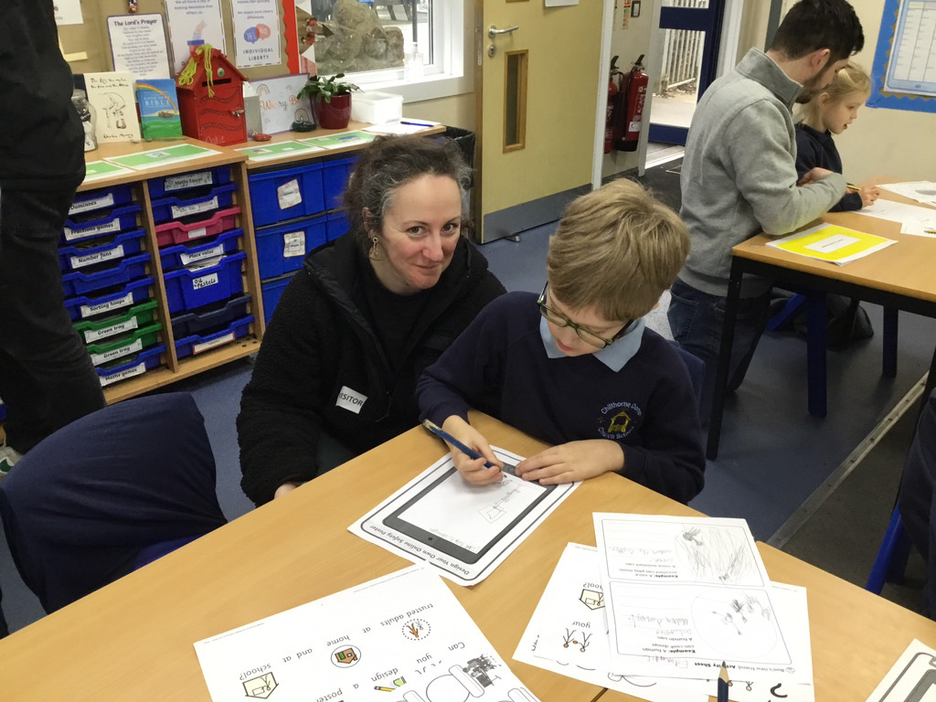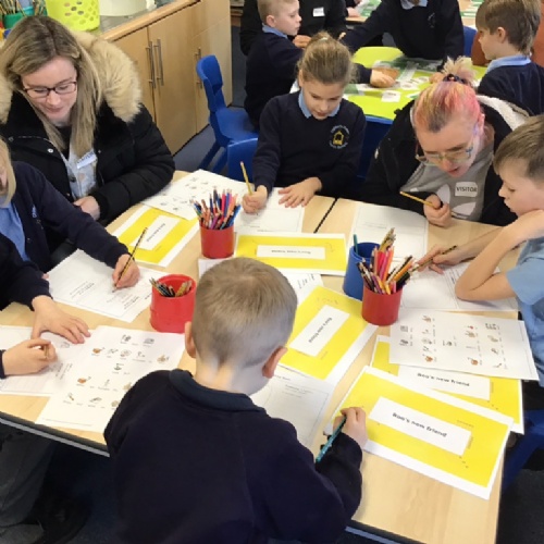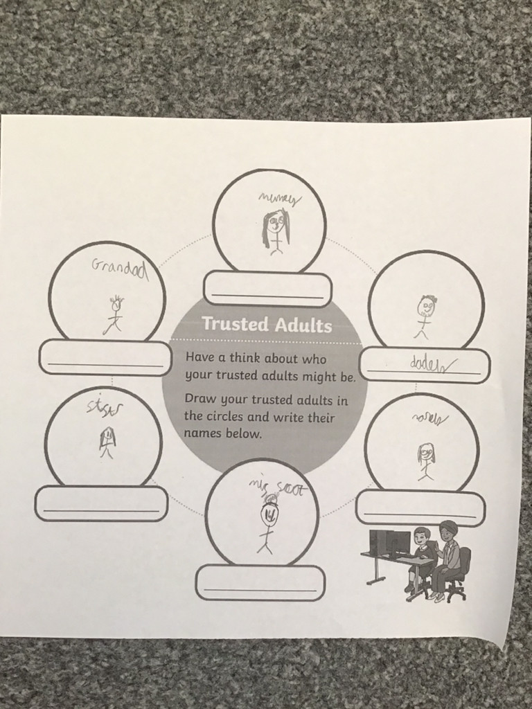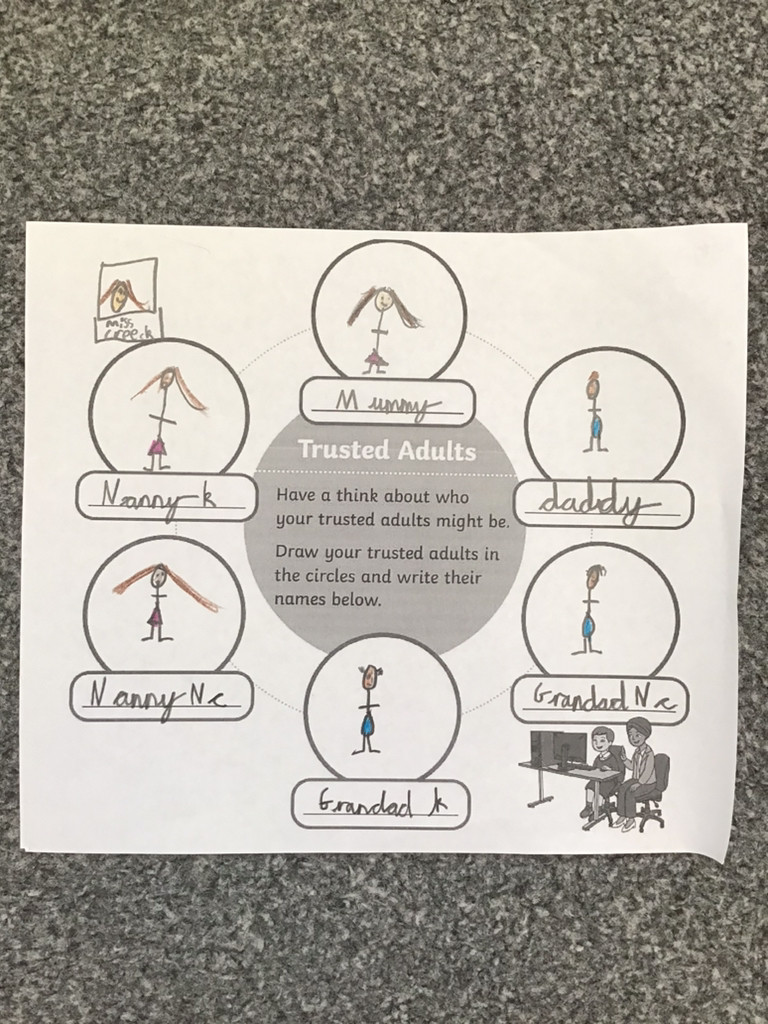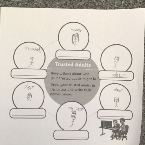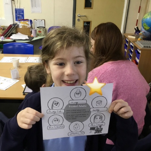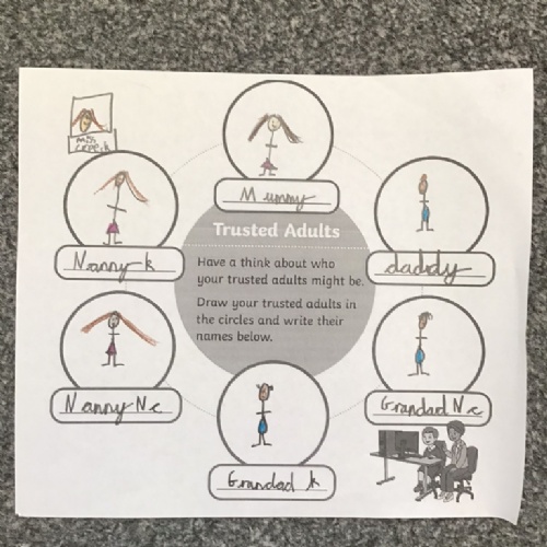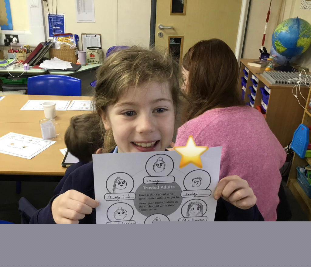 Drawing a poster of the children's trusted adults.