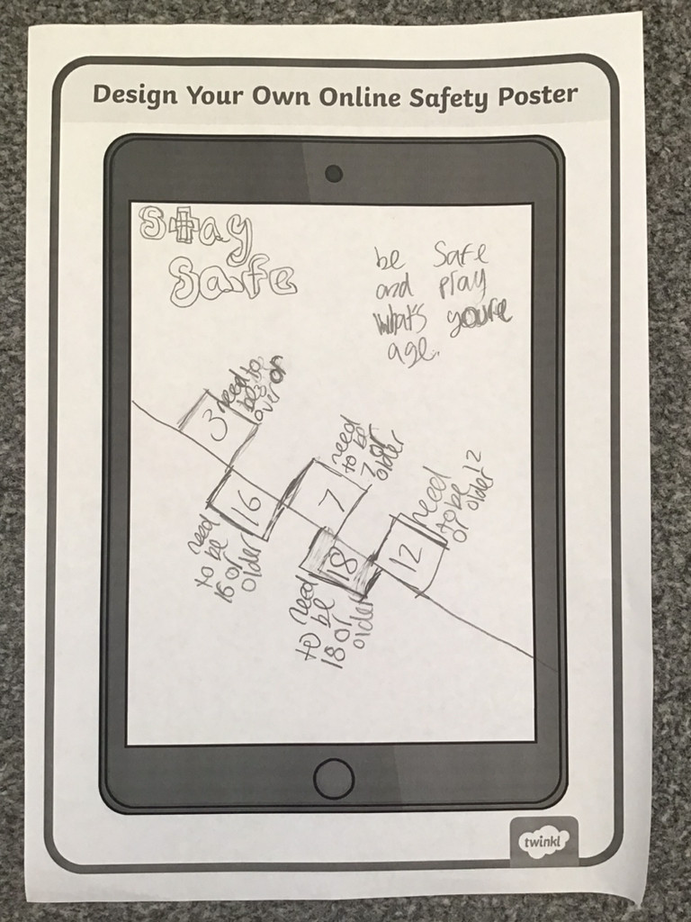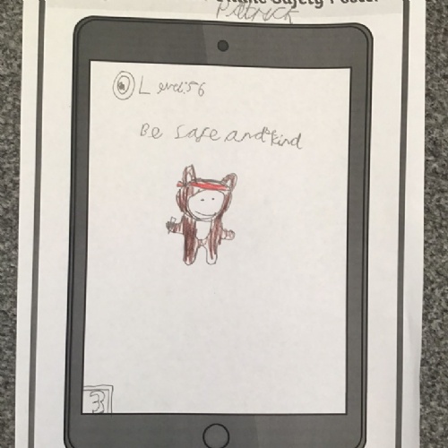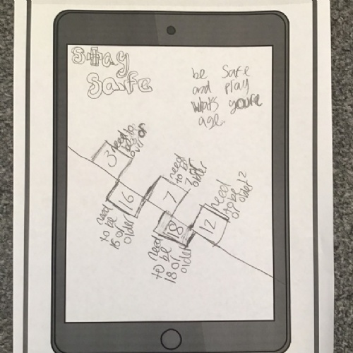 Designing an Online Safety poster, on a template of an iPad.